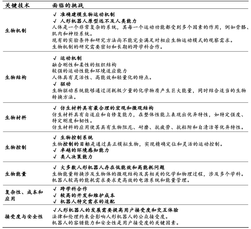 表4 人形机器人关键技术与挑战